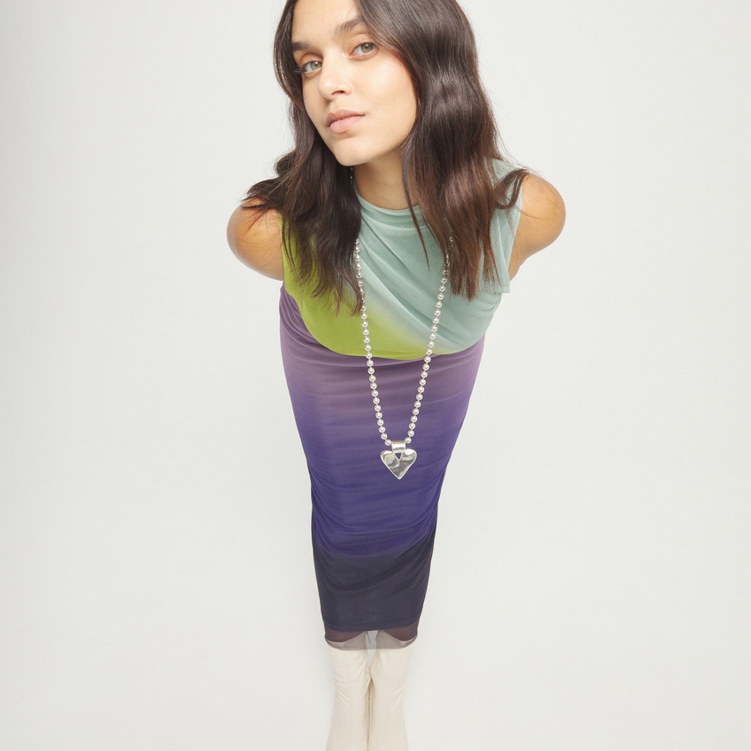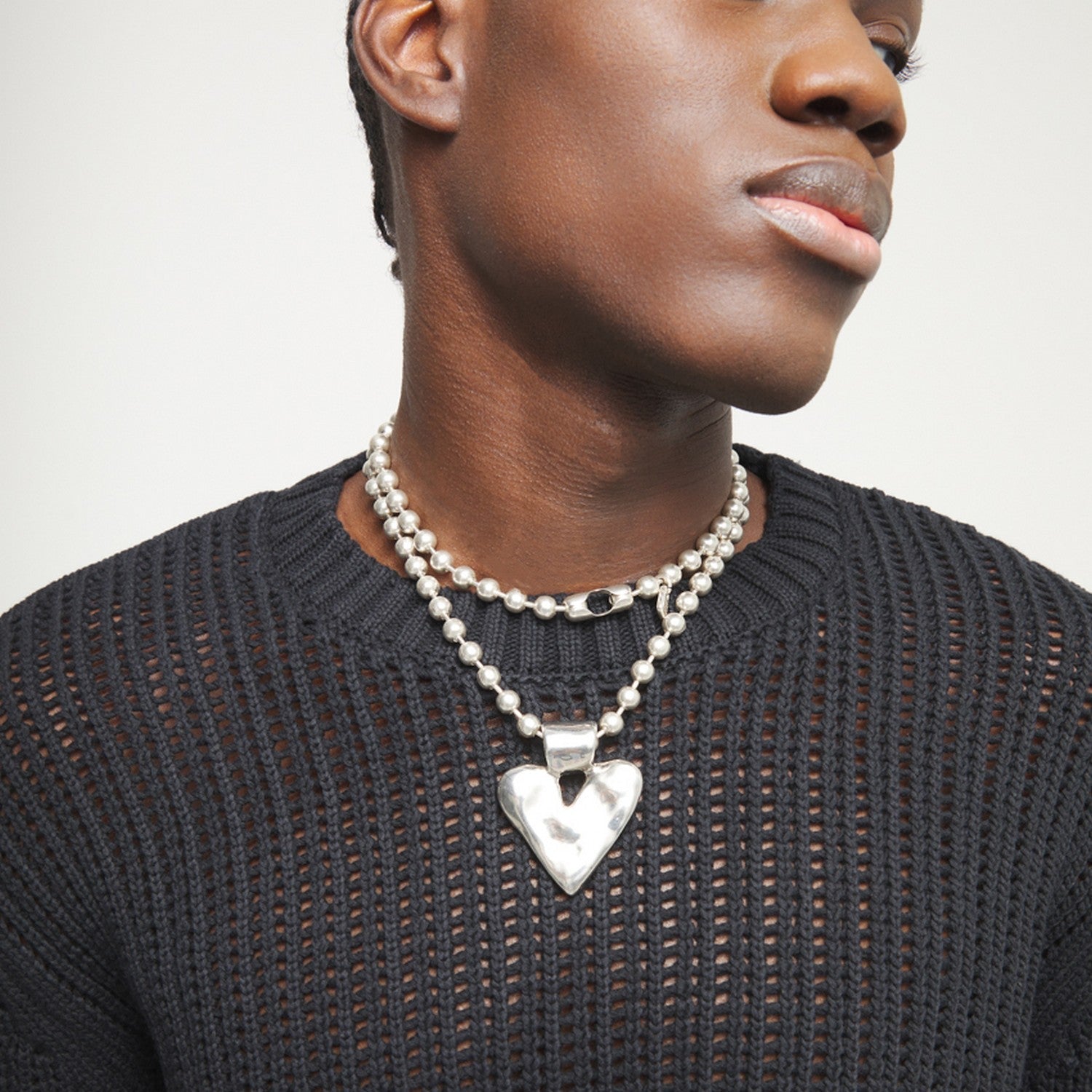 Sterling Silver Plated Ball Long Golden Heart Detail Necklace COL2067MTL000 crafted with alloy / silver plated. Key details include Alloy / Silver Plated, approx. 89g.
