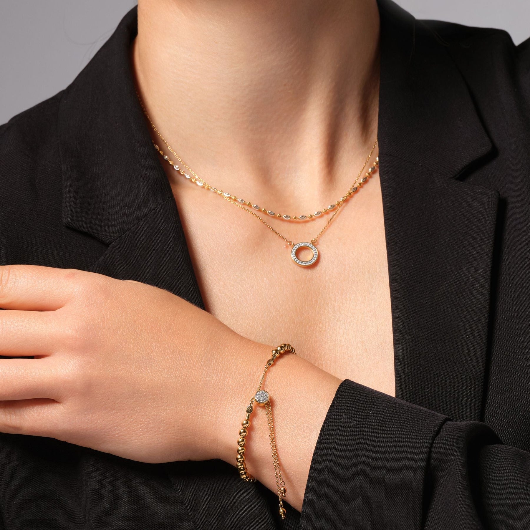 Add some sparkle to your look with this stunning diamond-cut beaded necklace crafted in precious two colour sterling silver. Length is 18 Inches. A feminine, timeless addition to your jewellery collection. Presented in a gift box.