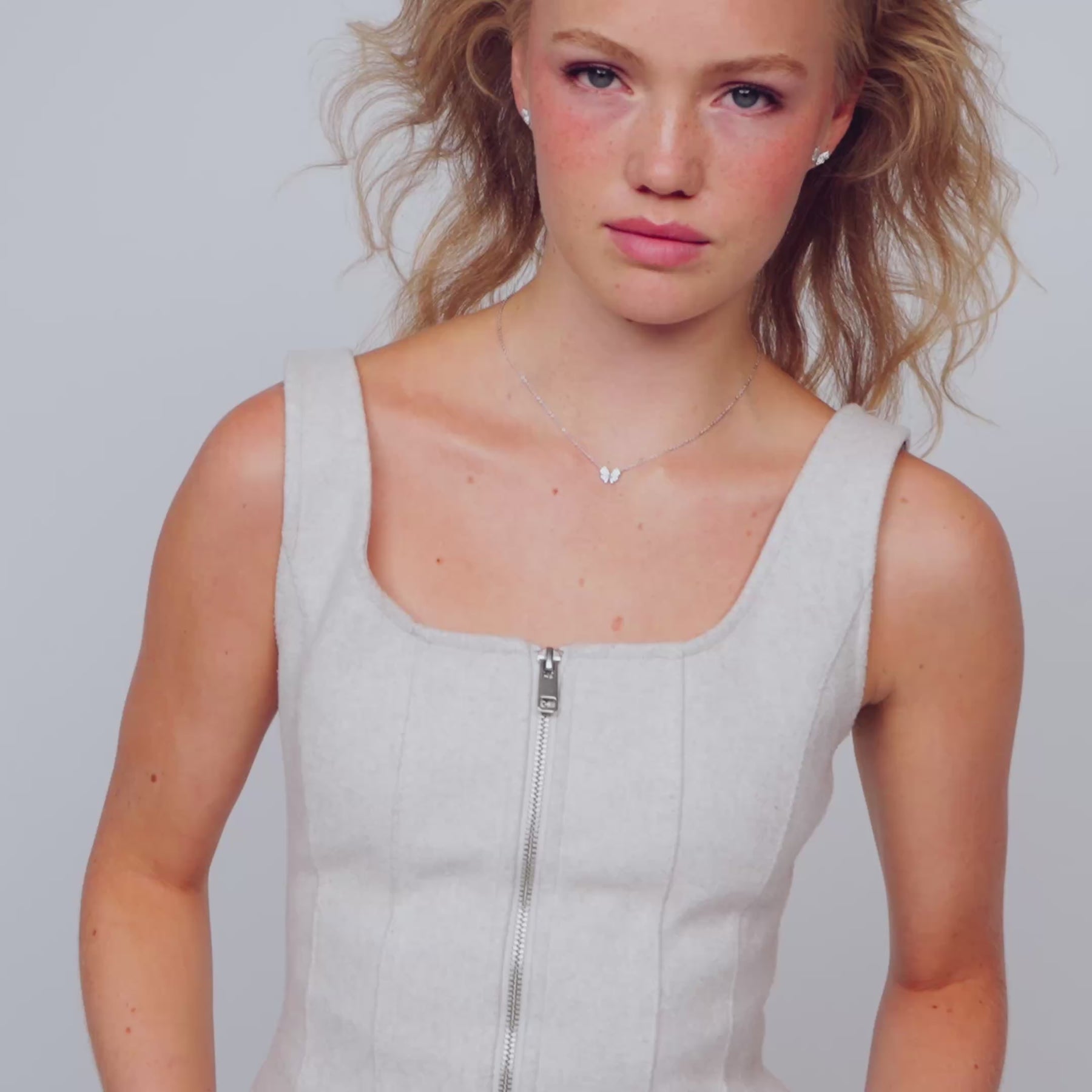 Sterling Silver White Zirconia Farfalla Necklace SJ-N2700-CZ