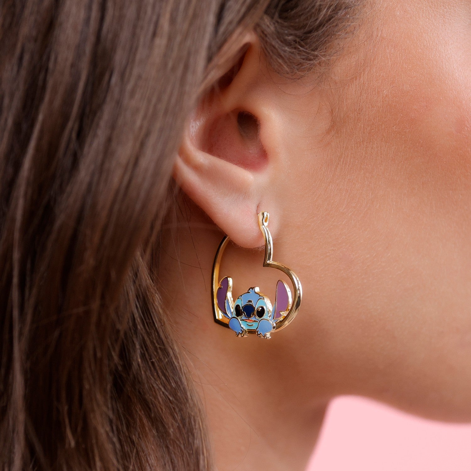 Stitch Brass Gold Plate Love Heart Huggie Earrings EF01402YL.PA