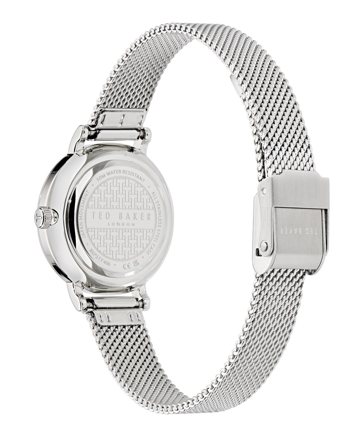 Ted Baker Women’s Staciie 28 mm Mother-of-Pearl Silver Mesh Watch BKPSTF406
