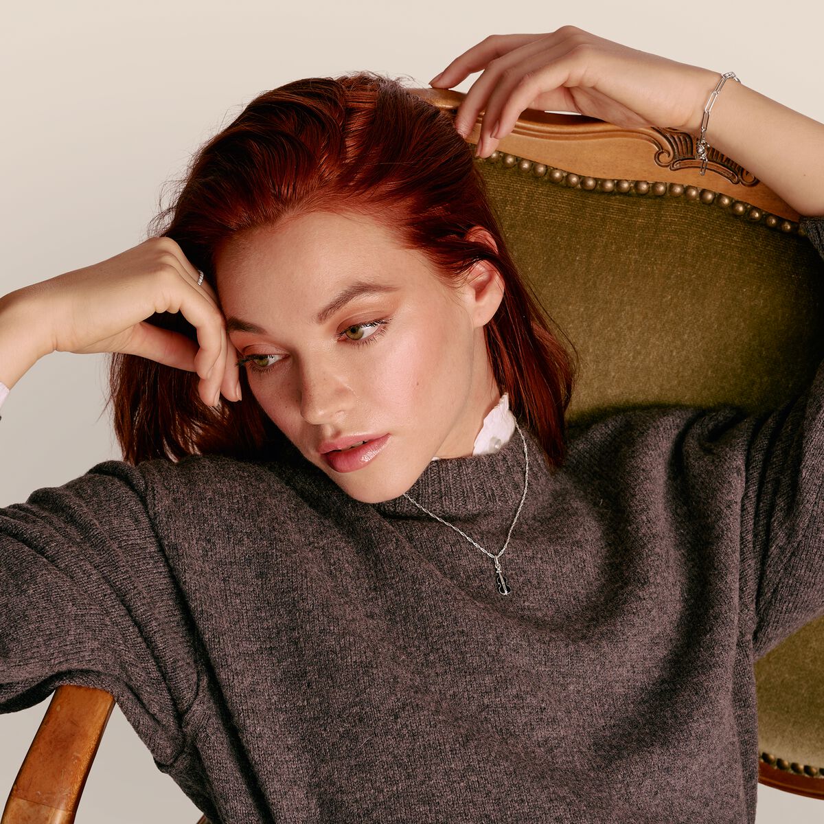 The necklace unites the symbolic power of the cello charm with a fine silver chain, becoming a true statement piece for fans of the Wednesday series. The oxidised 925 sterling silver pendant is finely detailed and reflects Wednesday’s devotion to her instrument. The delicate chain completes the design with elegance, making this jewellery a stylish everyday companion – an expression of individuality and artistic depth.