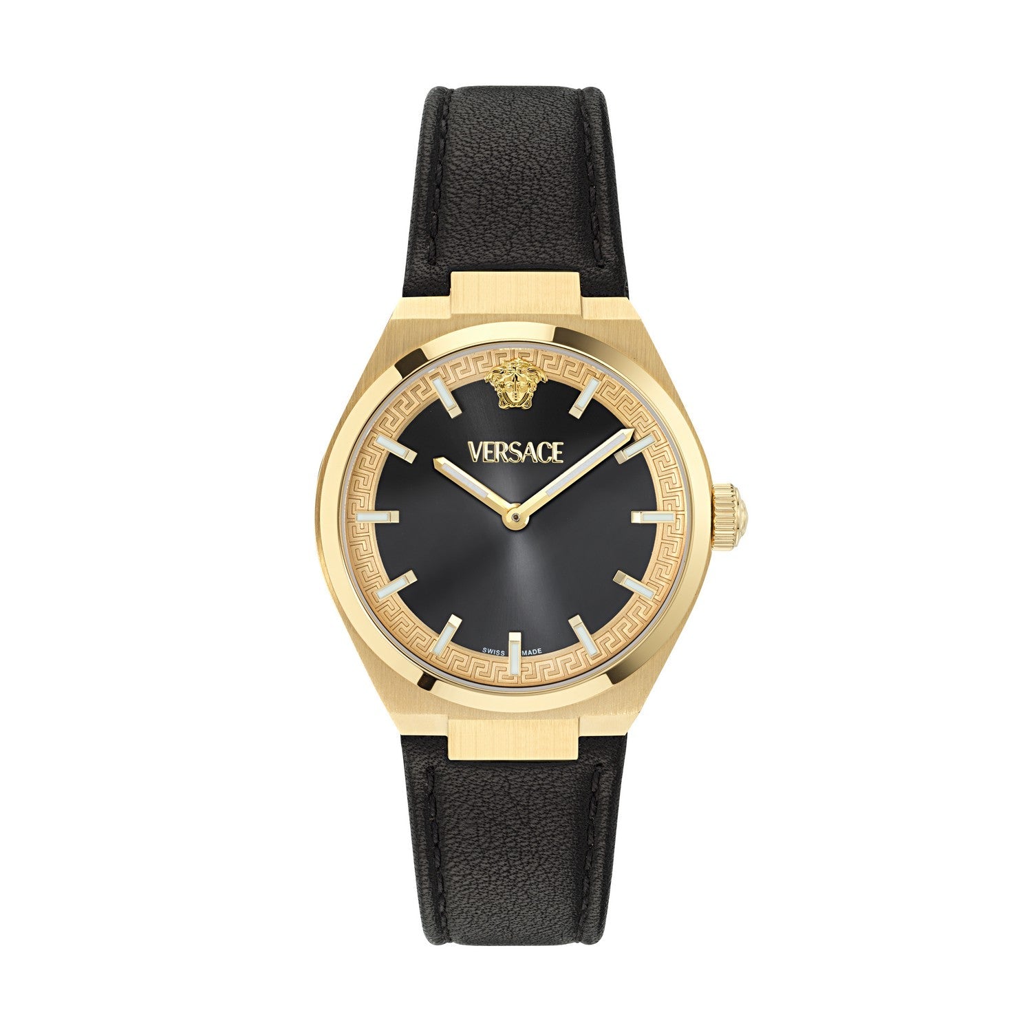 Discover confident luxury styling with this Versace V-Auria watch, designed to combine signature detailing, dependable performance and a polished everyday presence. The 35 mm case, black dial and strap create a refined look that moves effortlessly from day to evening. Powered by 2 hands quartz, this timepiece offers reliable accuracy and elegant wearability, finished with swiss made craftsmanship.