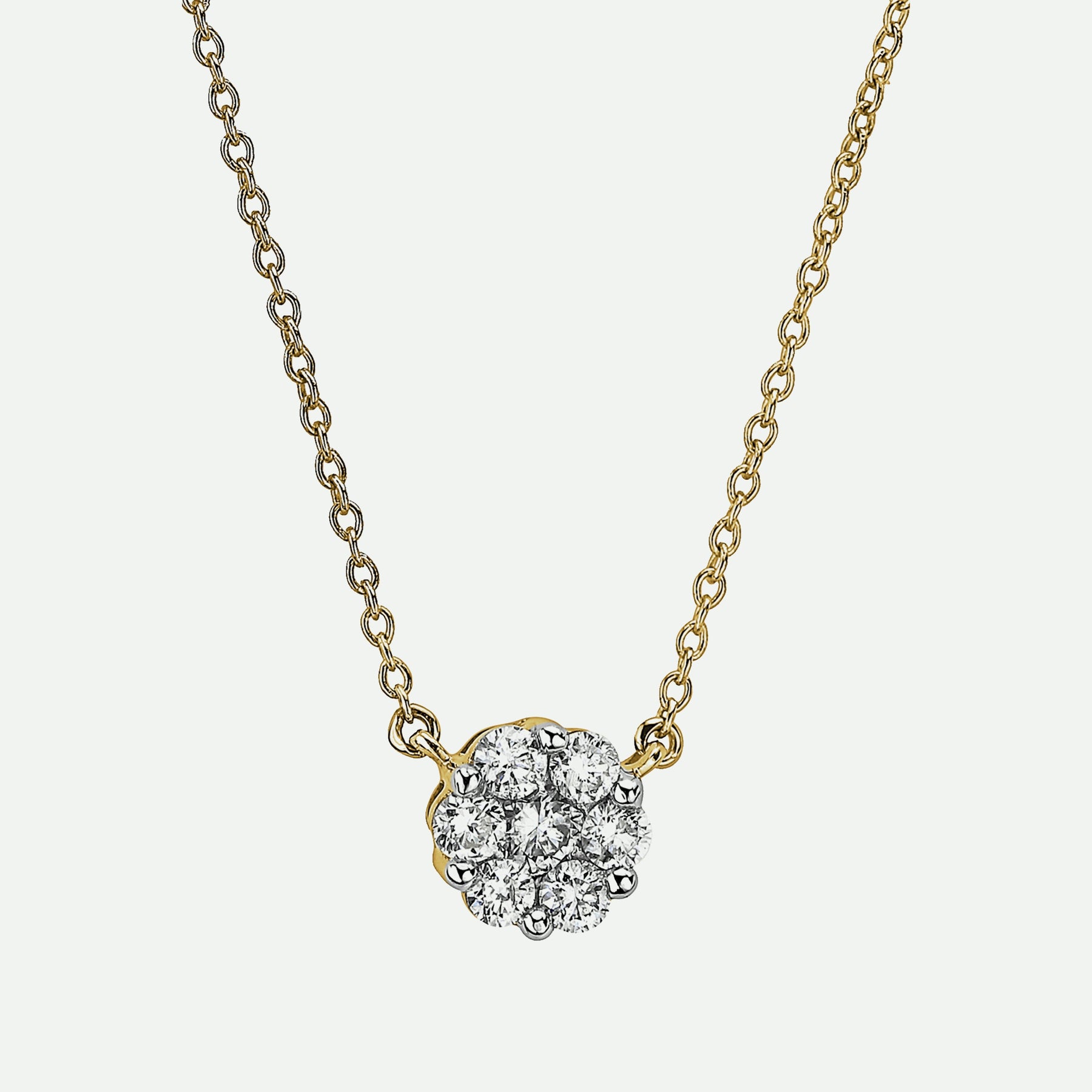 Our Yvette necklace is beautifully crafted in 9 carat yellow gold and set with brilliant lab grown diamonds in a charming cluster design.